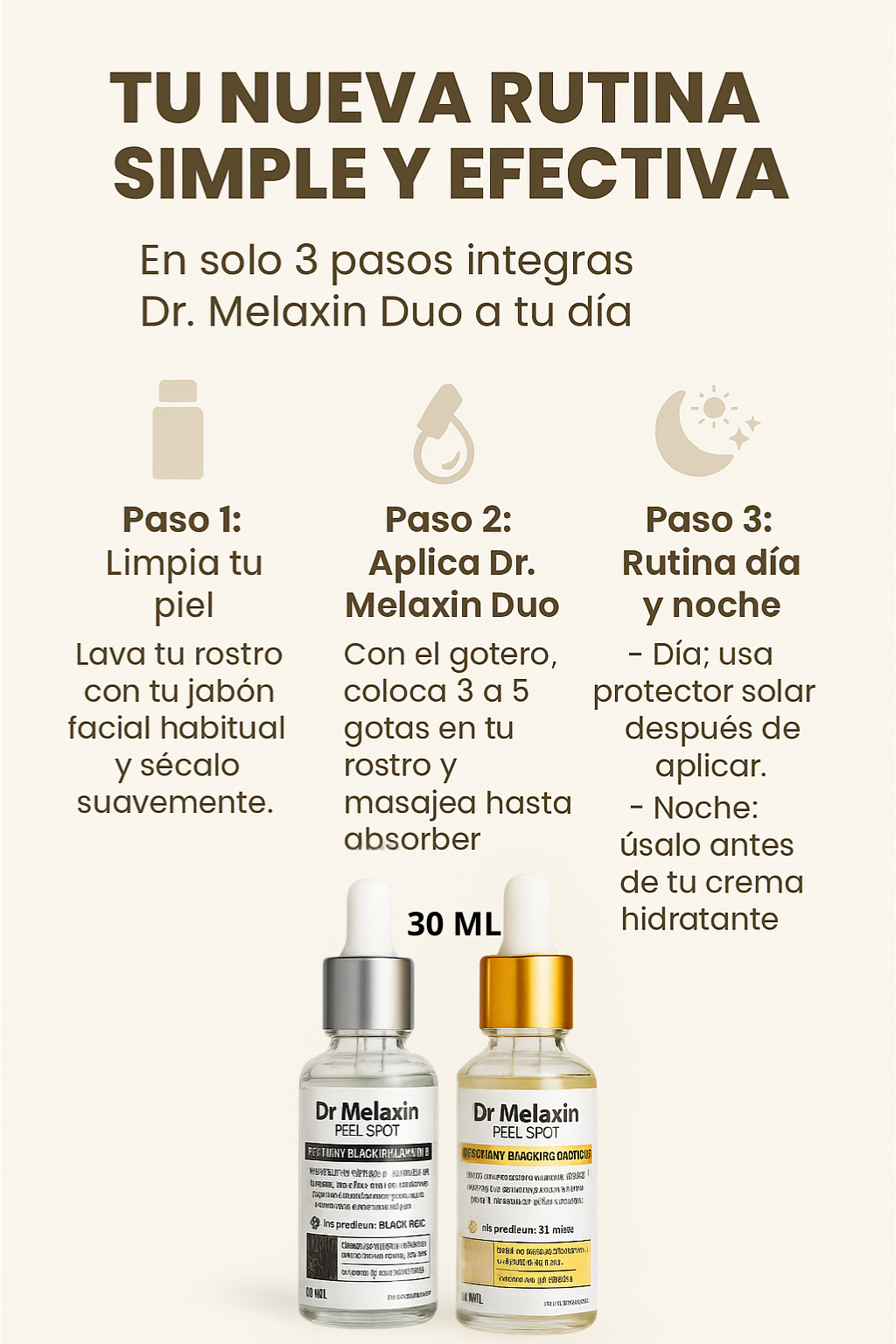 Dr. Melaxin Duo | Deja de Tapar con Maquillaje. Empieza a Borrar de Raíz.