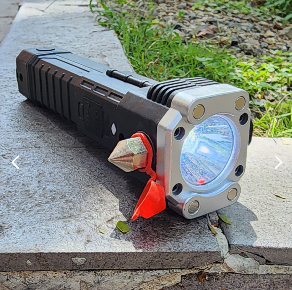Atrapado? Con un golpe seco, su martillo de acero de tungsteno revienta cualquier vidrio lateral. Estás fuera en segundos.