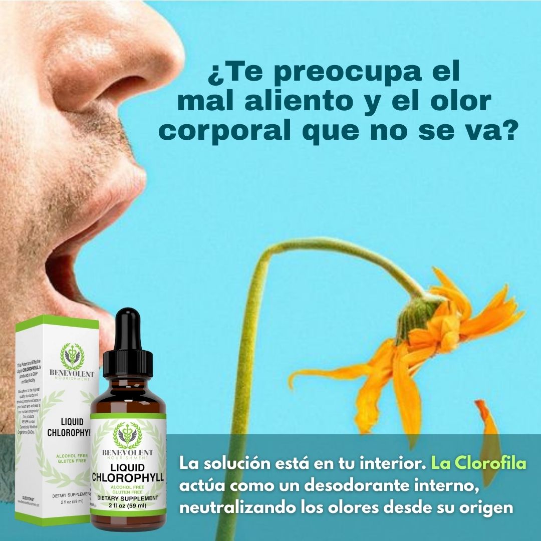 Sabemos lo que es eso. La Clorofila Líquida es como un desodorante, pero para todo tu cuerpo, neutralizando los olores desde el interior. Di adiós a la preocupación y siéntete fresco y seguro en cualquier situación.
