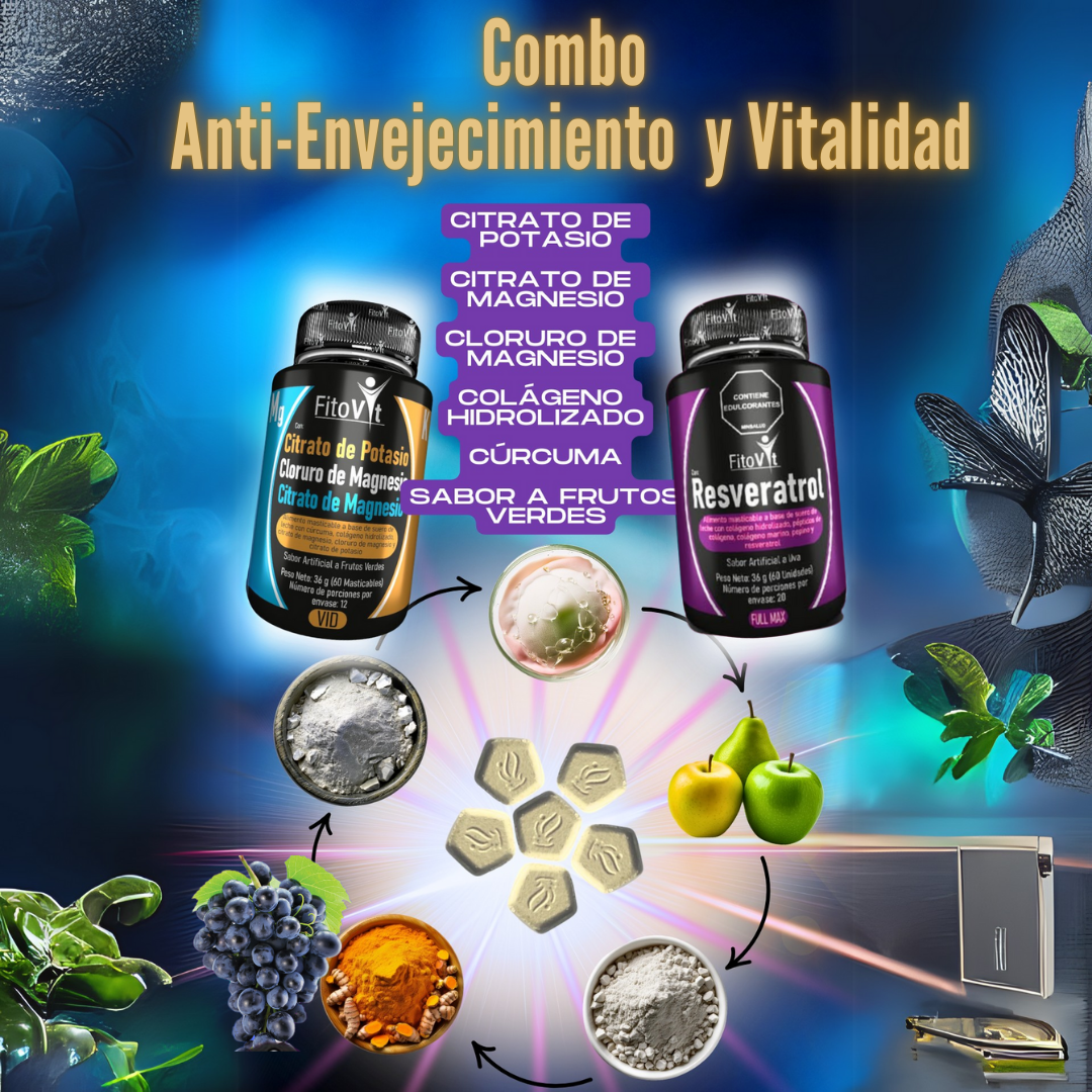 Esta dupla revolucionaria combina resveratrol para combatir el envejecimiento, colágeno para una piel firme y minerales esenciales como magnesio y potasio para un corazón sano y vitalidad máxima. No te conformes con lo común; elige lo extraordinario. Ideal para quienes mantienen rutinas ocupadas y quieren cuidar su bienestar. Simple, efectiva y fácil de tomar!